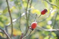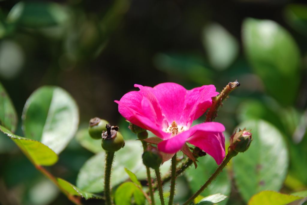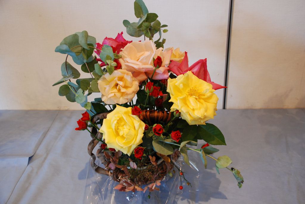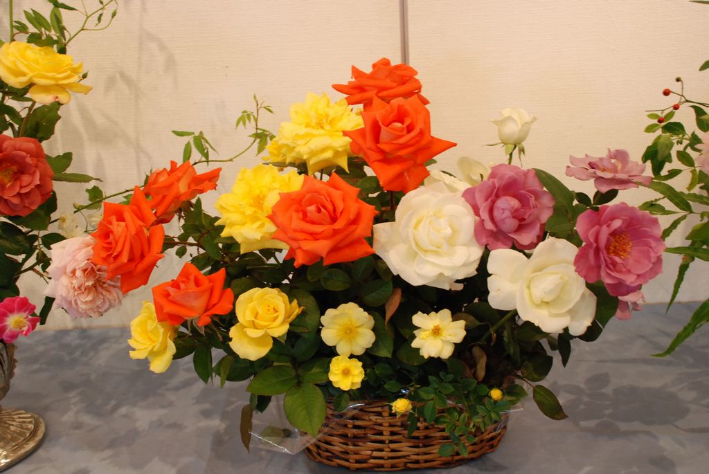 ワイルドローズのエリアでは、ローズヒップを見ることができました。(写真1,2) バラ園は結構な人手。そんななか、花はそれなりにきれいでした(花がらをとったりしないのですね。) 展示館ではフラワーアレンジメントをしていたので、パチリ。